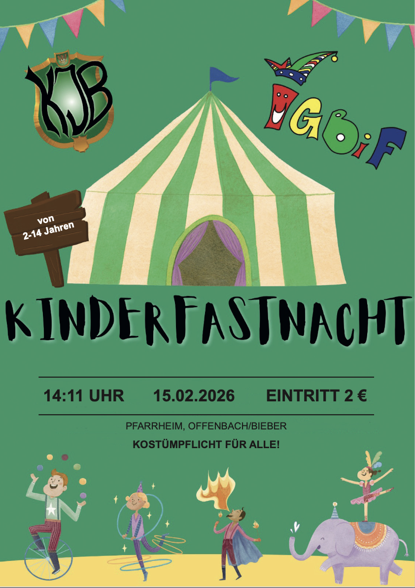 Neben den Sitzungen am 06. & 07.02.2026 findet auch wieder eine Kinderfastnacht am 15.02.2026 statt.